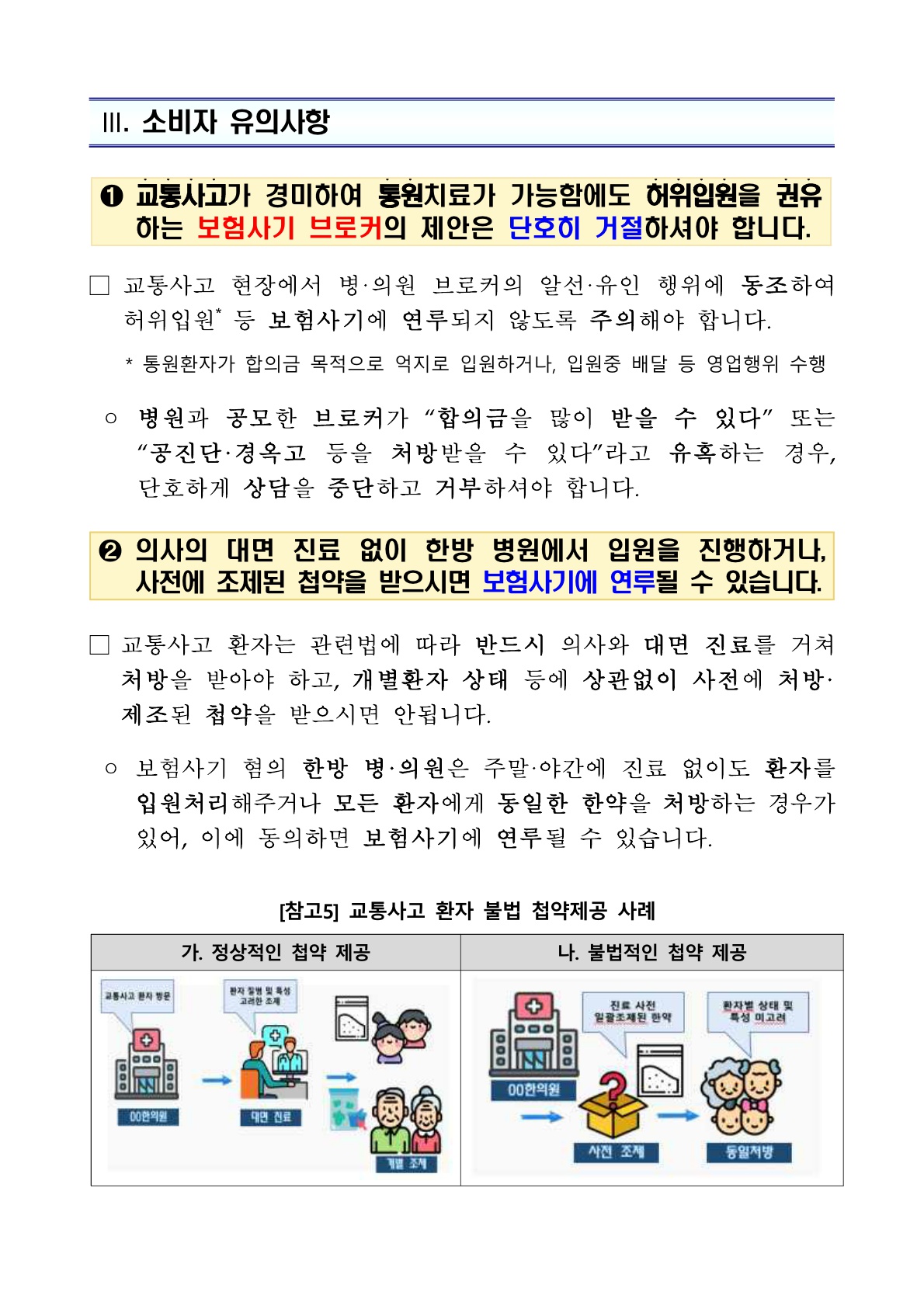 - 교통사고 환자는 반드시 의사 대면진료와 정당한 절차를 거쳐야 합니다.