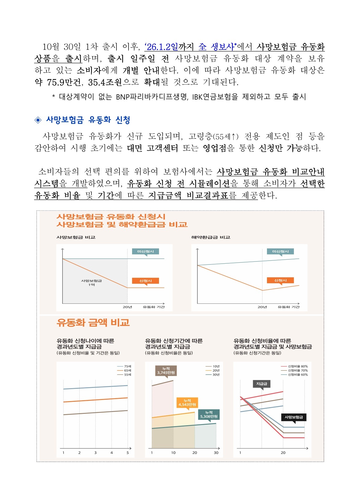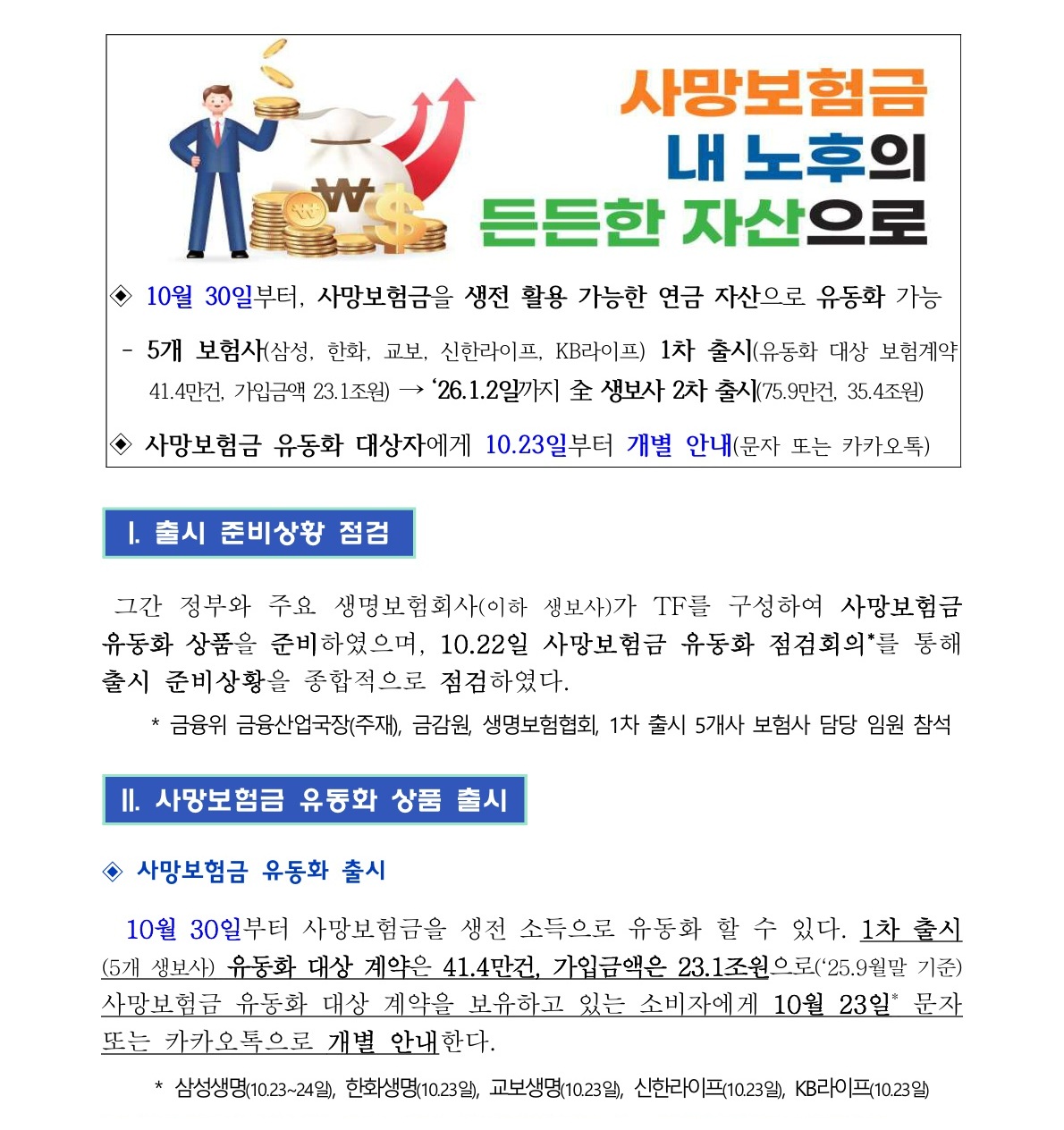2025년 10월 30일부터 사망보험금 유동화 제도 시행.