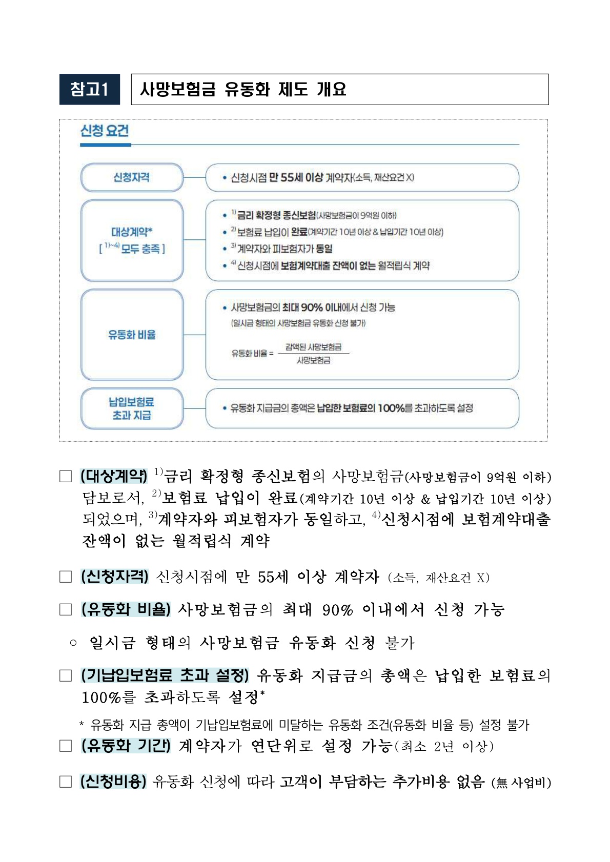 | 유동화 비율 | 사망보험금의 최대 90% 이내 |