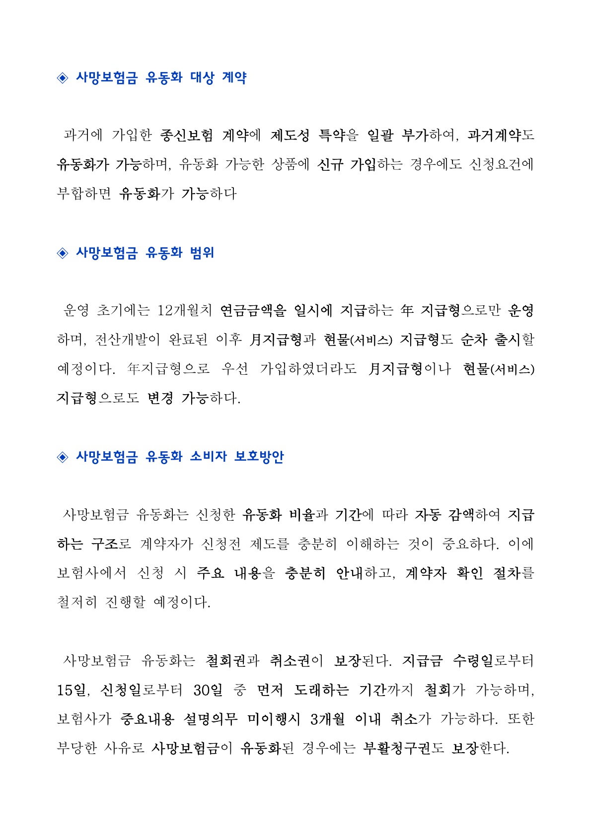 ‘유동화’란 쉽게 말해 미래에 받을 돈(사망보험금)을 현재 사용할 수 있게 바꾸는 제도입니다.