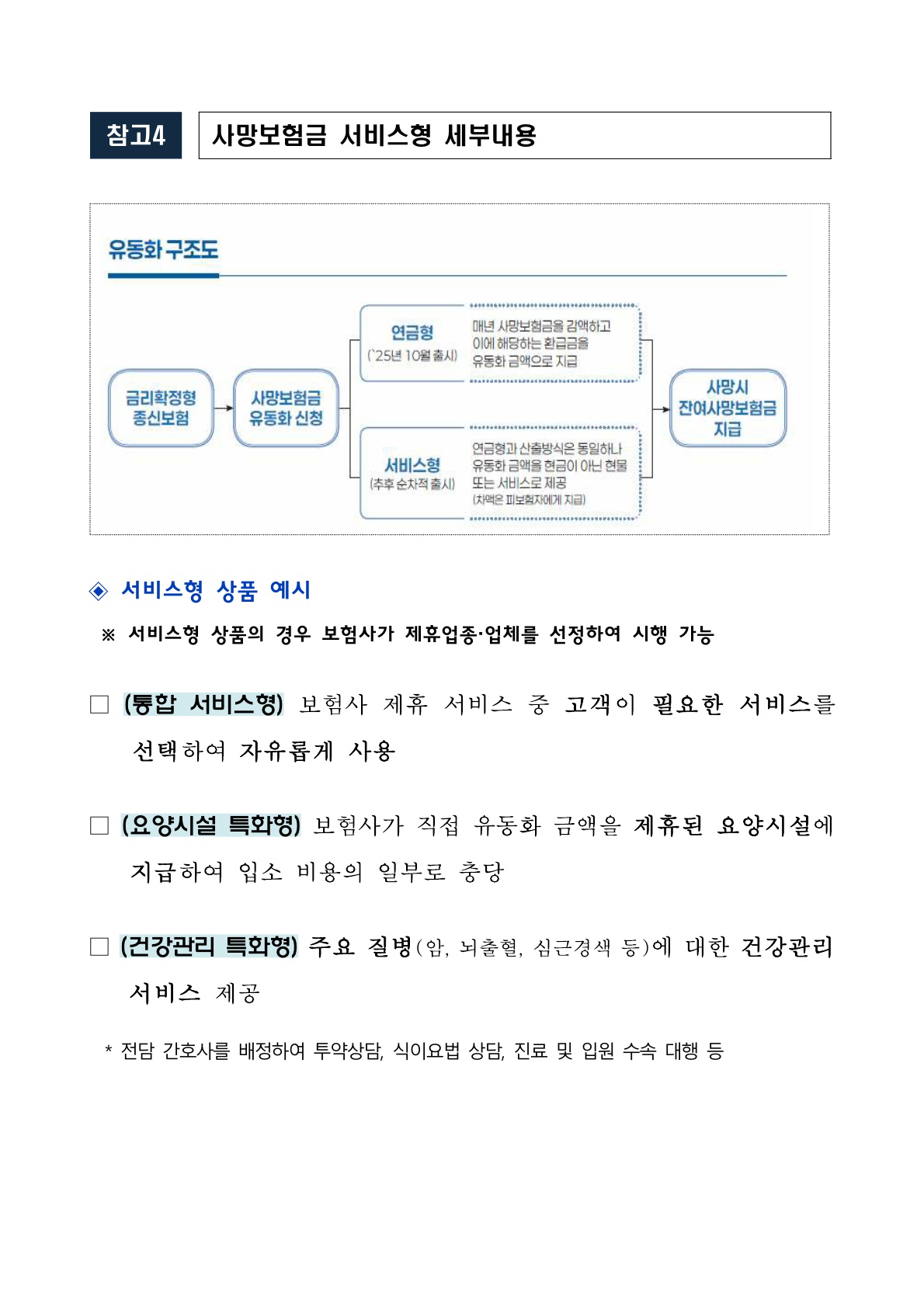 | 건강관리형 | 암, 뇌졸중, 심근경색 등 주요 질환 관련 건강관리 서비스 제공 |