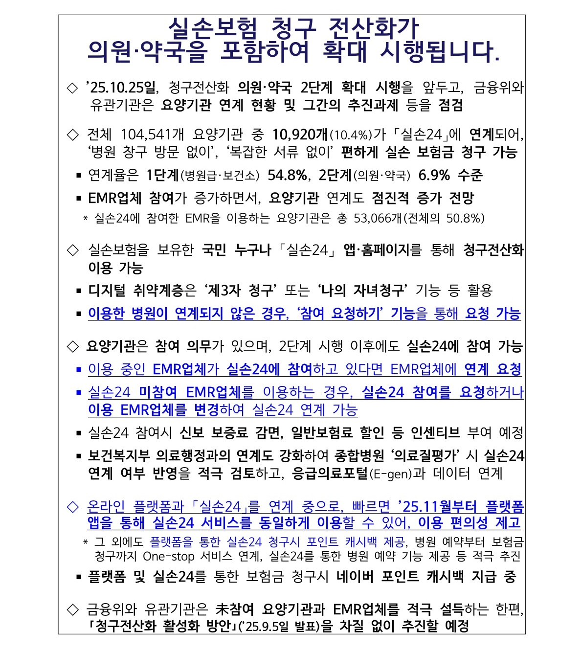 2025년 10월 25일부터 실손보험 청구 전산화 2단계가 시행됩니다.